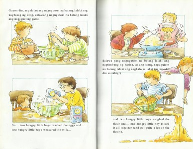 nagtimbang ng harina, at ang isang nagugutom