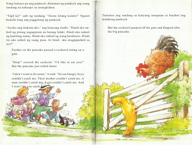 “Tigil ka!” sabi ng tandang. “Gusto kitang kainin!” Ngunit
