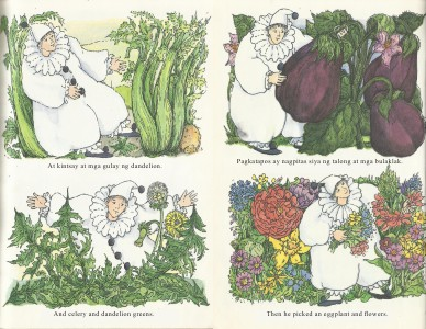 Pagkatapos ay nagpitas siya ng talong at mga bulaklak. Then he picked an eggplant and flowers.