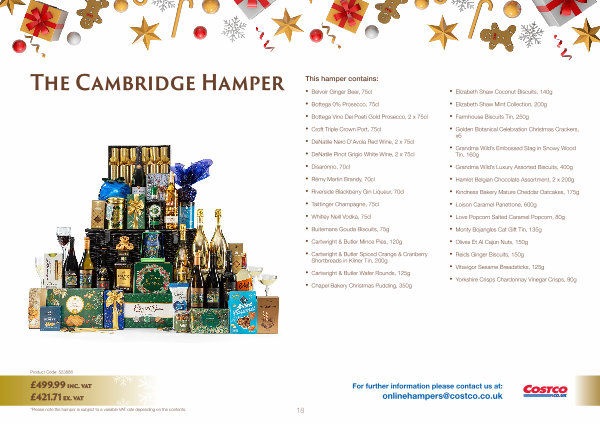 For further information please contact us at: onlinehampers @ costco. co. uk