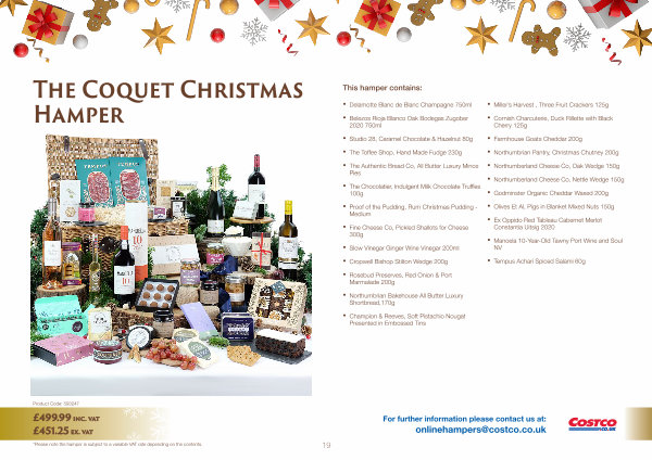 For further information please contact us at: onlinehampers @ costco. co. uk