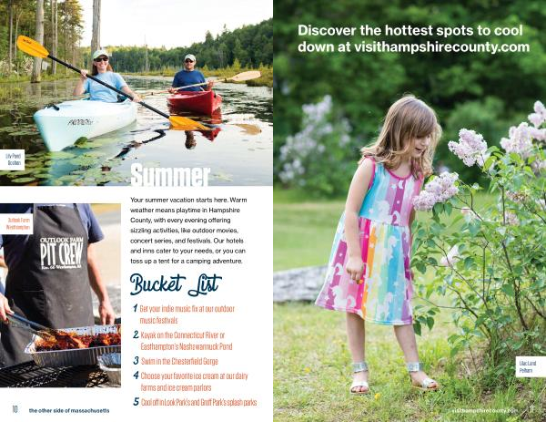 Your summer vacation starts here . Warm weather means playtime in Hampshire County , with every evening offering sizzling activities , like outdoor movies , concert series , and festivals . Our hotels and inns cater to your needs , or you can toss up a tent for a camping adventure .