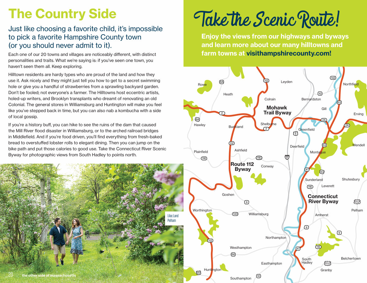 9 116 66 63 9 143 142 10 10 9 8A 8A 5 20 116 116 116 116 116 116 116 116 112 112 112 2 2A 2A 63 63 47 91 202 202 2 47 Northampton Williamsburg Goshen Worthington Amherst Ashfield Plainfield Huntington Belchertown Granby South Hadley Southampton Easthampton Westhampton Sunderland Montague Leverett Shutesbury Buckland Wendell Shelburne Greenfield Deerfield Northfield Bernardston Gill Erving Colrain Leyden Heath Rowe Hawley Conway Pelham Route 112 Byway Connecticut River Byway Mohawk Trail Byway Take the Scenic Route! Enjoy the views from our highways and byways and learn more about our many hilltowns and farm towns at visithampshirecounty. com!