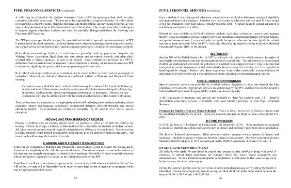 A full continuum of programs and services are available to identified students , ages 3-21 . Specific information concerning services is available from your building principal or from Pupil Personnel Services .