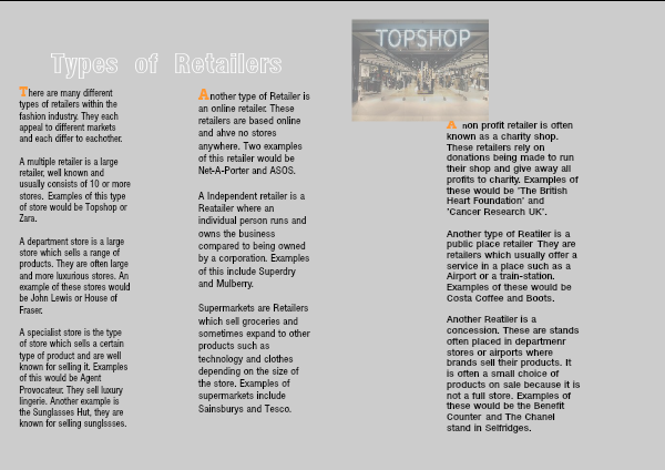 Within the fashion industry there are many different types of retailers. They each appeal to