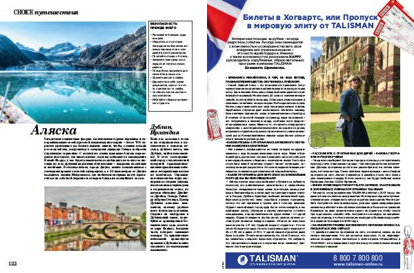 – РАССКАЖИТЕ О ПРОГРАММАХ ДЛЯ ДЕТЕЙ – КАКОВА ГЕОГРА- ФИЯ И ГРАФИК УЧЕБЫ? – Чаще всего выбирают большие города и столицы, но почувствовать культуру легче в маленьких городах – там атмосфера более аутентичная. Детские программы достаточно разнообразны: и в летние каникулы, и в течение года. Самое активное время выездов – июль. График программ на лето обычно появляется в декабре, после чего можно уже планировать поездку. В этом сезоне у нас будут любимая всеми Ирландия, Англия, США и Германия. – КАКИХ УСПЕХОВ ДОСТИГАЮТ ТЕ, КТО АКТИВНО УЧАСТВОВАЛИ В ЗАРУБЕЖНЫХ УЧЕБНЫХ ПРОГРАММАХ TALISMAN? – Так как по этому направлению TALISMAN работает с 2001 года, у нас даже успели сложиться свои династии. Мои первые студенты-путешественники уже отправляют учиться за рубеж своих детей. Многие ребята поступили в иностранные вузы, успешно сдали международные экзамены, работают в иностранных компаниях в России и за границей. Буквально на днях звонила мама одного из студентов, чтобы спустя три года сказать спасибо: « Мы поступили по конкурсу на американскую программу, а толчок к изучению языка дала Ирландия, куда ребенок ездил на три недели в 2014 году ». – НА КАКИЕ ПРОГРАММЫ ЗАРУБЕЖНОГО ОБУЧЕНИЯ МОЖНО ЗА- ПИСЫВАТЬСЯ УЖЕ СЕЙЧАС? – С декабря появится программа на лето, и начнется запись на все летние направления. Что же касается взрослых, то на индивидуальные поездки можно записаться в любое время. Обращайтесь в TALISMAN – и вы наверняка получите массу положительных эмоций и полезных навыков! реклама