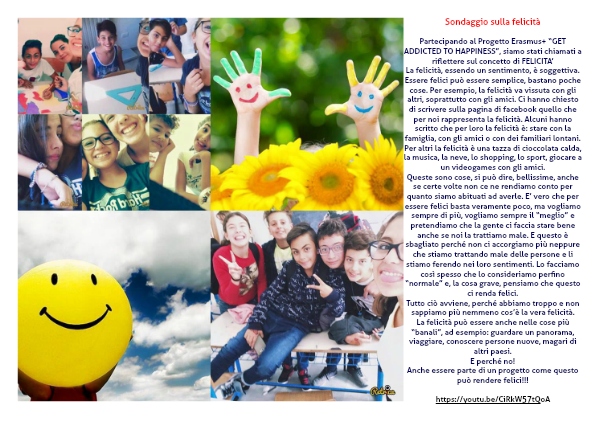 Partecipando al Progetto Erasmus+ “GET ADDICTED TO HAPPINESS”, siamo stati chiamati a riflettere sul concetto di FELICITA’