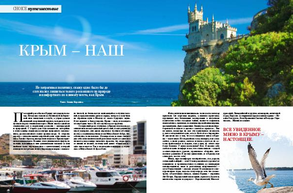 Последний раз я была в Крыму лет двадцать назад. Ночью мы гуляли по Ялтинской набережной или танцевали в клубе, а утром делали мощный спортивный заплыв, загорали и выпускали пар на теннисном корте. Жили мы на одной из сталинских дач в окружении роскоши – интерьерной и природной. С берега дом был незаметен: постройка в стиле ампир скрывалась внутри природного заповедника, расположенного выше уровня моря. Со стороны дороги о существовании секретной дачи тоже никто не знал. Таким образом, мы провели неделю в Крыму практически инкогнито. Помимо этого уникального факта, та поездка запомнилась мне диковинным запахом( в нем хвойные ноты переплетались с цветочными), который я нигде не встречала позже; бирюзовым морем с идеально чистой, но безжалостно впивающейся в ступни галькой; и предложением руки и сердца, которое я получила на обратном пути в Москву от своего будущего мужа. В тот момент я была уверена: Крым – наш, и посещать его мы будем часто. Но все случилось по-другому.