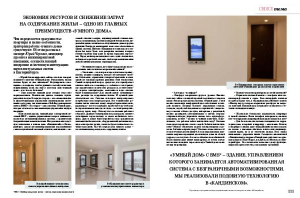 « УМНЫЙ ДОМ » С BMS * – ЗДАНИЕ, УПРАВЛЕНИЕМ КОТОРОГО ЗАНИМАЕТСЯ АВТОМАТИЗИРОВАННАЯ СИСТЕМА С БЕЗГРАНИЧНЫМИ ВОЗМОЖНОСТЯМИ. МЫ РЕАЛИЗОВАЛИ ПОДОБНУЮ ТЕХНОЛОГИЮ В « КАНДИНСКОМ ».