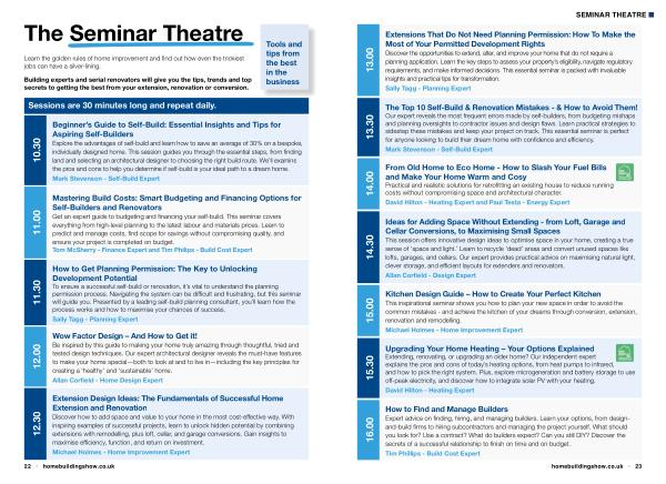 Our expert reveals the most frequent errors made by self-builders, from budgeting mishaps and planning oversights to contractor issues and design flaws. Learn practical strategies to sidestep these mistakes and keep your project on track. This essential seminar is perfect for anyone looking to build their dream home with confidence and efficiency. Mark Stevenson- Self-Build Expert