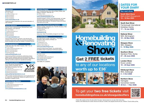 To get your two free tickets * visit homebuildingshow. co. uk / showguideoffers