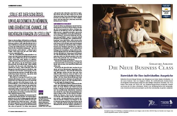der neuen Business Class von Singapore Airlines. Ein multifunktionales Business-Panel