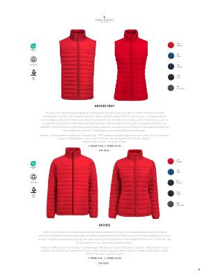 Extérieur: 100 % polyester recyclé 82 g / m 2. Rembourrage: 95 % Polyester recyclé 5 % Polyester. Doublure: 100 % Polyester recyclé 237 g / m 2, WP 400 Oeko-Tex Standard 100. 160 g / m 2 corps / 140 g / m 2 manche. Extérieur: 82 g / m ²- Rembourrage: 160 g / m ² corps, 140 g / m ² manches- Doublure: 37 g / m ²