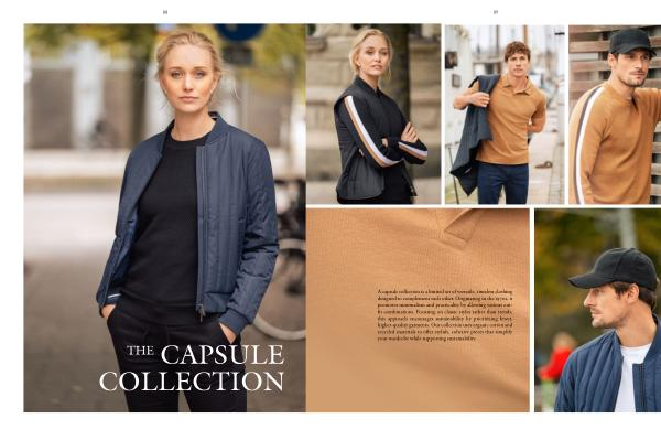 A capsule collection is a limited set of versatile , timeless clothing designed to complement each other . Originating in the 1970s , it promotes minimalism and practicality by allowing various outfit combinations . Focusing on classic styles rather than trends , this approach encourages sustainability by prioritizing fewer , higher-quality garments . Our collection uses organic cotton and recycled materials to offer stylish , cohesive pieces that simplify your wardrobe while supporting sustainability .