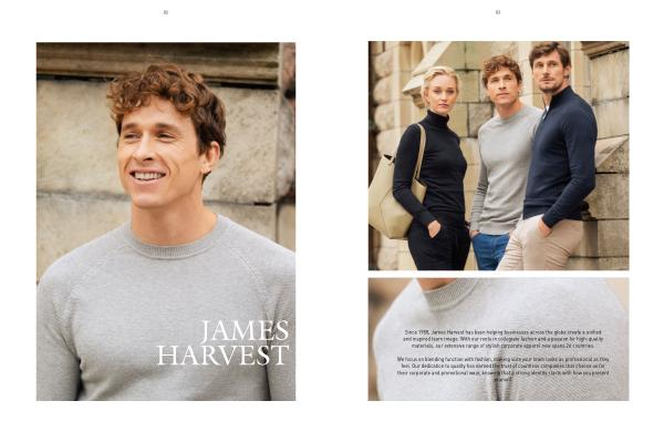 Since 1988 , James Harvest has been helping businesses across the globe create a unified and inspired team image . With our roots in collegiate fashion and a passion for high-quality materials , our extensive range of stylish corporate apparel now spans 26 countries .