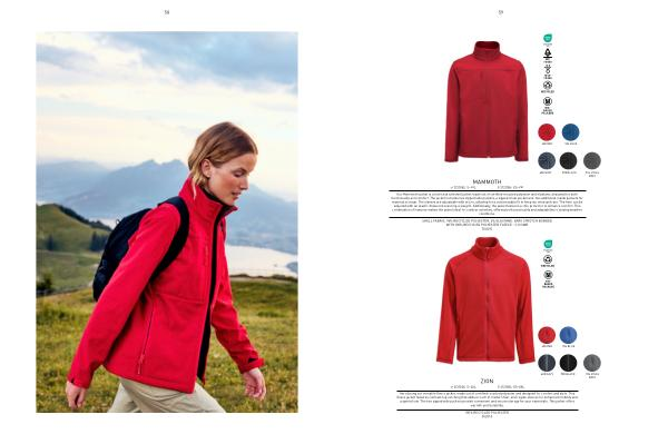 Our Mammoth jacket is a technical softshell jacket made out of certified recycled polyester and elastane , designed for both functionality and comfort . The jacket includes two zipped side pockets , a zipped chest pocket and two additional inside pockets for maximal storage . The sleeves are adjustable with velcro , allowing for a customizable fit to keep out wind and rain . The hem can be adjusted with an elastic drawcord ensuring a snug fit . Additionally , the jacket features a chin protector to enhance comfort . This combination of features makes the jacket ideal for outdoor activities , offering both practicality and adaptability to varying weather conditions .