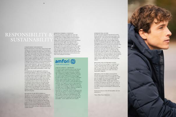 CLIMATE IMPACT AND EMISSIONS Research shows that 80 % of the climate impact from Swedish clothing comes from the production phase *. By doubling the active lifespan of a garment , the climate impact can be almost halved . Thus , the most important thing we can do is to increase the longevity of the products . That is why classic design and quality products - a concept that will never be out-of fashion – is the very core of everything we do . In addition , work actively with our suppliers regarding energy efficiency , energy source and production techniques to further reduce our total impact . A significant share of a garment ’ s total environmental footprint is traceable to the choice of material . Therefore , we strive to use more preferred materials – such as recycled polyester and organic cotton – whenever possible . However , all materials have advantages and disadvantages from a sustainability perspective and priority is always quality and durability to enable a long lifecycle . For transportation , that also significantly contributes to greenhouse gas emissions , we have to main strategies . Firstly , we constantly work with evaluating our processes to streamline our routines and plan our purchases well in advance . Within the New Wave Group , shipments of different sister companies are clubbed together as much as possible so that containers are always optimally filled during transport . We are also very careful which partners we choose to work with and only use well-known carriers we know are at the forefront from a sustainability perspective , both for sea freight and land transport . Secondly , we strive to influence the transportation companies that we are working with . New Wave Group is a member of “ Clean Shipping Index ”, that aims to impact the shipping companies to use cleaner vessels by ranking the most high-performing ships .