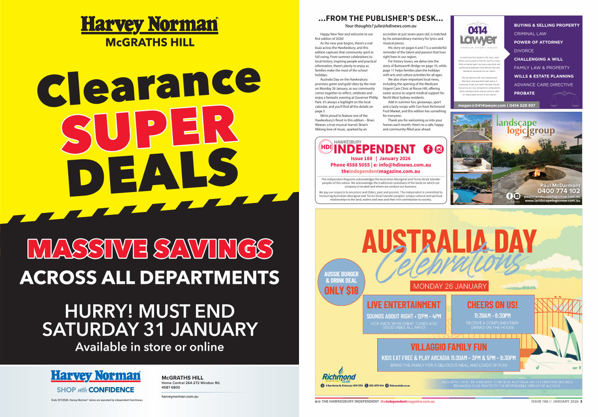 THE HAWKESBURY INDEPENDENT theindependentmagazine. com. au ISSUE 188 // JANUARY 2026 3