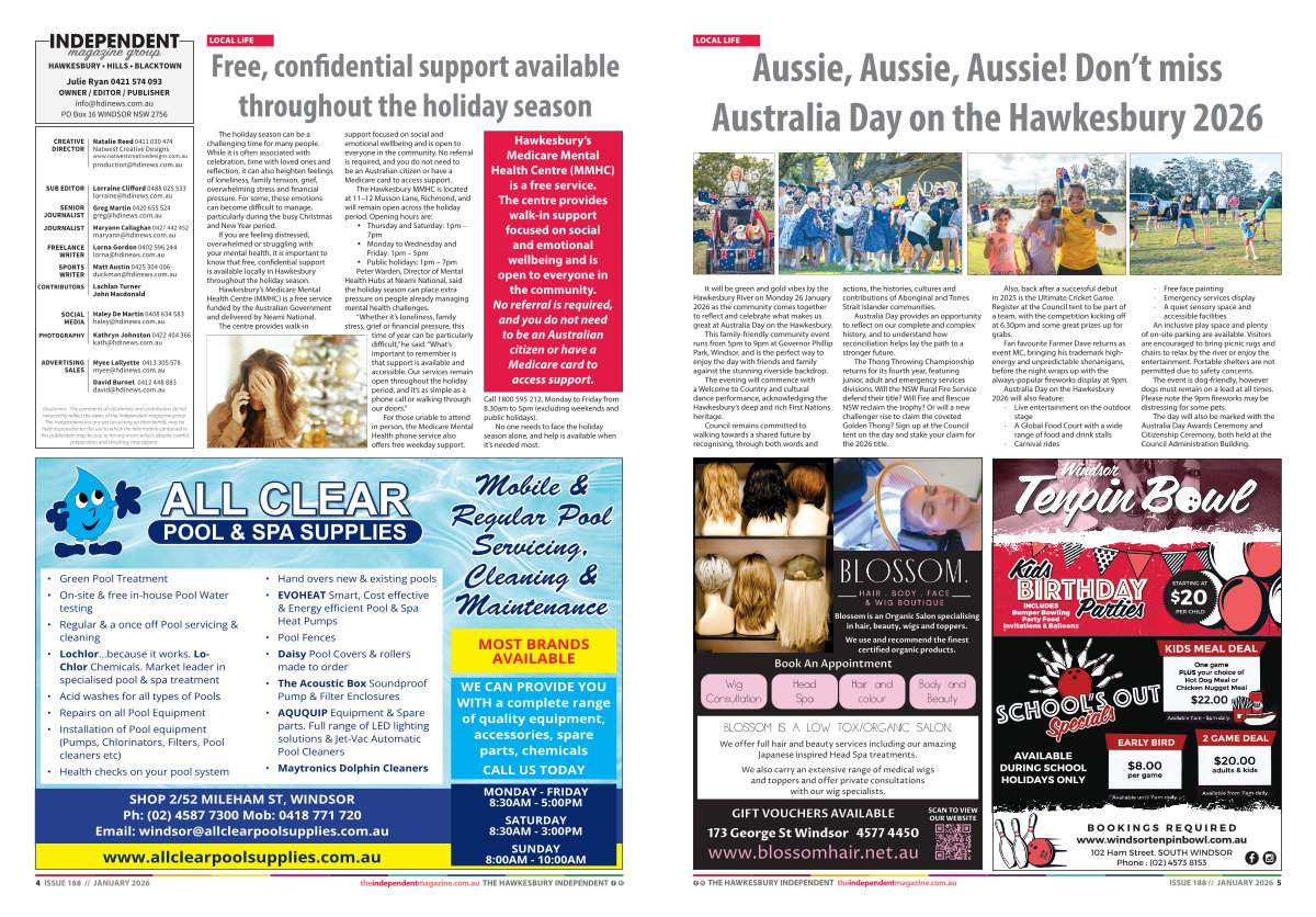 If you are feeling distressed, overwhelmed or struggling with your mental health, it is important to know that free, confidential support is available locally in Hawkesbury throughout the holiday season.