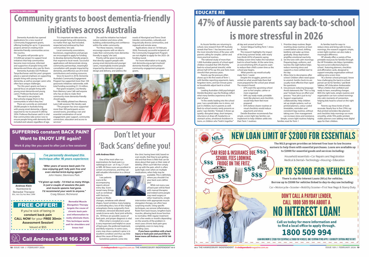 18 ISSUE 189 // FEBRUARY 2026 theindependentmagazine. com. au THE HAWKESBURY INDEPENDENT