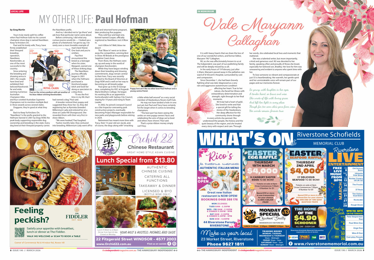 8 ISSUE 190 // MARCH 2026 theindependentmagazine. com. au THE HAWKESBURY INDEPENDENT