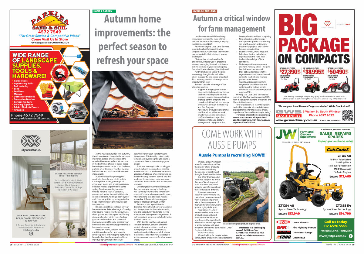 THE HAWKESBURY INDEPENDENT theindependentmagazine. com. au ISSUE 191 // APRIL 2026 29