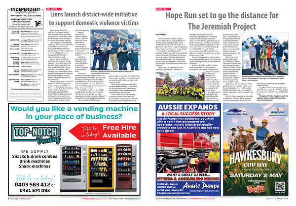 4 ISSUE 191 // APRIL 2026 theindependentmagazine. com. au THE HAWKESBURY INDEPENDENT