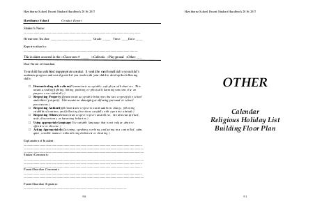 Hawthorne School Parent-Student Handbook 2016-2017 OTHER Calendar Religious Holiday List Building Floor Plan 51