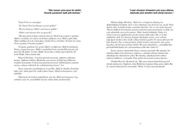 Sevgisini , gönlünü , her şeyini Allah ’ a verdiği için , Allah ’ la bütünleşti . Yunus , yaşamı boyunca , Allah ’ a onsekizbin beyit yazarak Divan ’ ın da çok güzel bir dil döktü . Cenab-ı Hakk , Yunus ’ dan o kadar güzel işledi ki , bir yerde Hakk , Yunus ismini aldı .