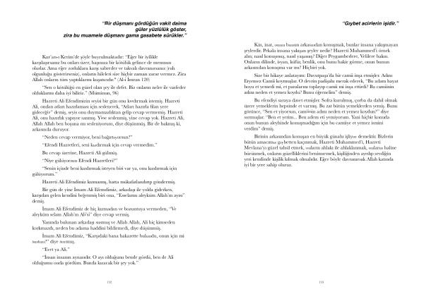 Birinin arkasından konuşan en büyük günahı işliyor demektir . Bizlerin bütün amacımız gıybetten kaçınmak , Hazreti Muhammed ’ i , Hazreti Mevlana ’ yı güzel tahsil etmek , onların ahlakı ile ahlaklanmak , onların haline bürünmek , onların güzelliklerini benimsemek , kişiliğinden ayrılıp sevdiğin yeri kendinde kişilik kılmak olmalıdır . Eğer böyle davranırsak Allah katında iyi bir yere sahip oluruz .