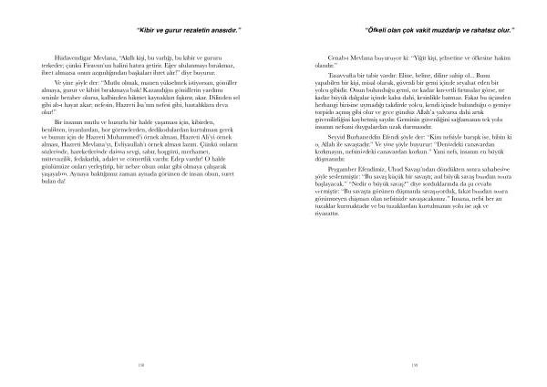 Ve yine şöyle der : “ Mutlu olmak , manen yükselmek istiyorsan , gönüller almaya , gurur ve kibiri bırakmaya bak ! Kazandığın gönüllerin yardımı seninle beraber olursa , kalbinden hikmet kaynakları fışkırır , akar . Dilinden sel gibi ab-ı hayat akar ; nefesin , Hazreti İsa ’ nın nefesi gibi , hastalıklara deva olur !”