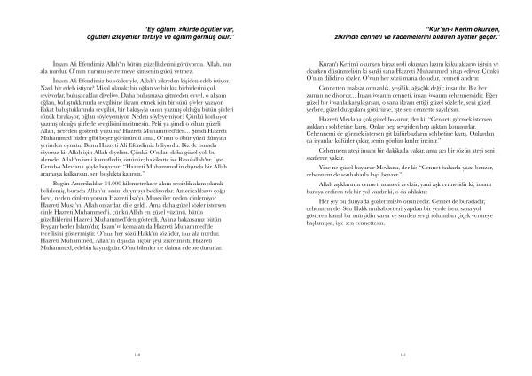 Her şey bu dünyada gözlerimizin önündedir . Cennet de buradadır , cehennem de . Sen Hakk muhabbetleri yapılan bir yerde isen , sana yol gösteren kamil bir mürşidin varsa ve senden sevgi tohumları çiçek vermeye başlamışsa , işte sen cennettesin .