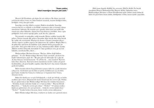Allah insan dışında değildir , her zerremiz Allah ' la diridir . En büyük örneğimiz Hazreti Muhammed ' dir , Hazreti Ali ' dir . Onlardan sonra Hüdavendigar Mevlana ve Piran Efendilerimiz gelir . Onları örnek alalım ki , bizler de güzel birer insan olalım , kimliğimize erelim , huzur içinde yaşayalım .
