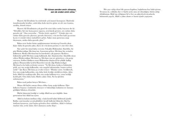 Her şeye sahip olsan bile gurura kapılma , başkalarını hor hakir görme . Tevazuya in , yoklukta dur ve hiçbir şeyin sana ait olmadığını , bütün sahip olduklarının Allah ’ tan olduğunu bil ve her an şükrederek niyazlarda bulunarak yaşa ki , Allah ’ a yakın olasın ve huzur içinde yaşayasın .