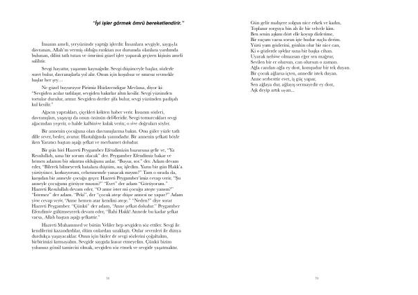 Hazreti Muhammed ve bütün Veliler hep sevgiden söz ettiler . Sevgi ile kendilerini kazandırdılar , ölüm onlardan uzaklaştı . Onlar sevenleri ile dünya durdukça yaşayacaklar . Onun için bizler de sevgi sözlerini çoğaltalım , birbirimizi kırmayalım . Sevgide saygıda kusur etmeyelim . Çünkü bizim yolumuz gönül tamircisi olmak , sevgiden söz etmek ve sevgide yaşatmaktır .