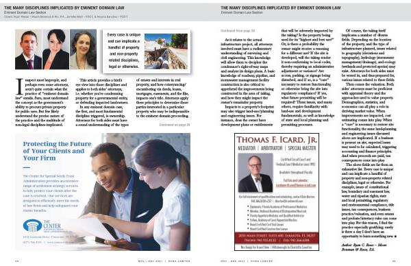 The above fields are far from an exhaustive list . Every case is unique and can implicate a handful of property and non-property related disciplines , legal or otherwise . For example , issues of constitutional law , boundary and easement law , water and riparian rights , state and local permitting , regulatory and environmental compliance , title issues , tax consequences , business practice / valuation , and even estates and probate / intestacy rules can come into play . For this reason , I find the practice especially gratifying ; rarely is there a day I don ’ t have an opportunity to learn something new . n