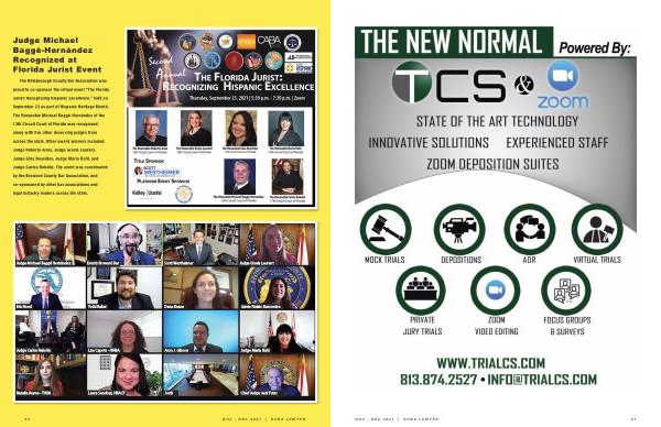 theHillsboroughCountyBarAssociationwas proudtoco-sponsorthevirtualevent “ theflorida Jurist : recognizingHispanicexcellence ,” heldon september23aspartofHispanicHeritagemonth . theHonorablemichaelBaggé-Hernándezofthe 13thCircuitCourtoffloridawasrecognized , alongwithfiveotherdeservingjudgesfrom acrossthestate . otherawardwinnersincluded : JudgerobertoArias , JudgegiselaLaurent , JudgeginaBeovides , Judgemariaruhl , and JudgeCarlosrebollo . theeventwascoordinated bytheBrowardCountyBarAssociation , and co-sponsoredbyotherbarassociationsand legalindustryleadersacrossthestate .