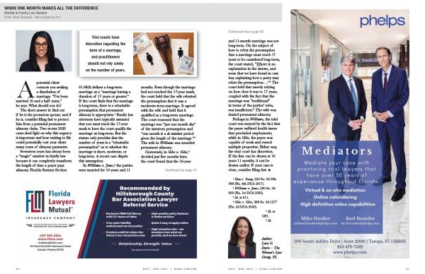 and 11-month marriage was not long-term . On the subject of how to rebut the presumption that a marriage must reach 17 years to be considered long-term , the court stated , “[ t ] here is no explanation in the statute , and none that we have found in case law , explaining how a party may rebut the presumption ….” 5 The court held that merely relying on how close it was to 17 years , coupled with the fact that the marriage was “ traditional ” in terms of the parties ’ roles , was insufficient . 6 The wife was denied permanent alimony .