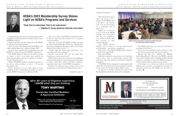E X E C U T I V E D I R E C T O R ’ S M E S S A G E J o h n F . K y n e s – H i l l s b o r o u g h C o u n t y B a r A s s o c i a t i o n continuedfrompage10