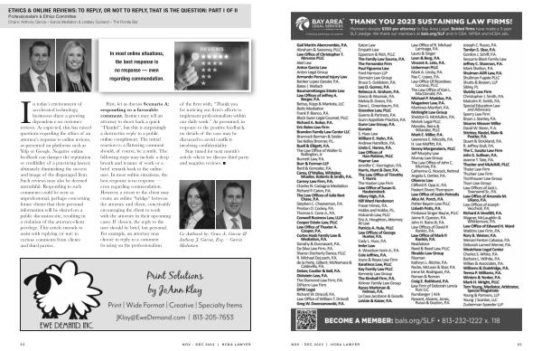 In today ’ s environment of accelerated technology , businesses share a growing dependence on customer reviews . As expected , this has raised questions regarding the ethics of an attorney ’ s response to online reviews , as presented on platforms such as Yelp or Google . Negative online feedback can damper the reputation or credibility of a practicing lawyer , ultimately diminishing the success and image of the disparaged firm . Such reviews may also be deemed untruthful . Responding to such comments could be seen as unprofessional , perhaps concerning future clients that their personal information will be shared on a public discussion site , resulting in a violation of the attorney-client privilege . This article intends to assist with replying ( or not ) to various comments from clients and third parties .