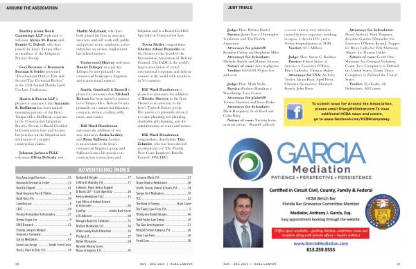 Garcia Mediation ...................................... 67 Gunn Law Group .............. Inside Front Cover Harris , Hunt & Derr , P . A . .......................... 39 advertisingindex