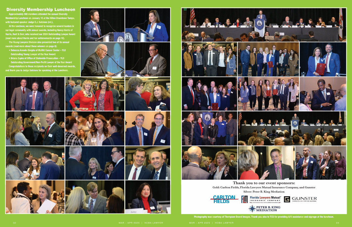 Thank you to our event sponsors : Gold : Carlton Fields , Florida Lawyers Mutual Insurance Company , and Gunster Silver : Peter B . King Mediation