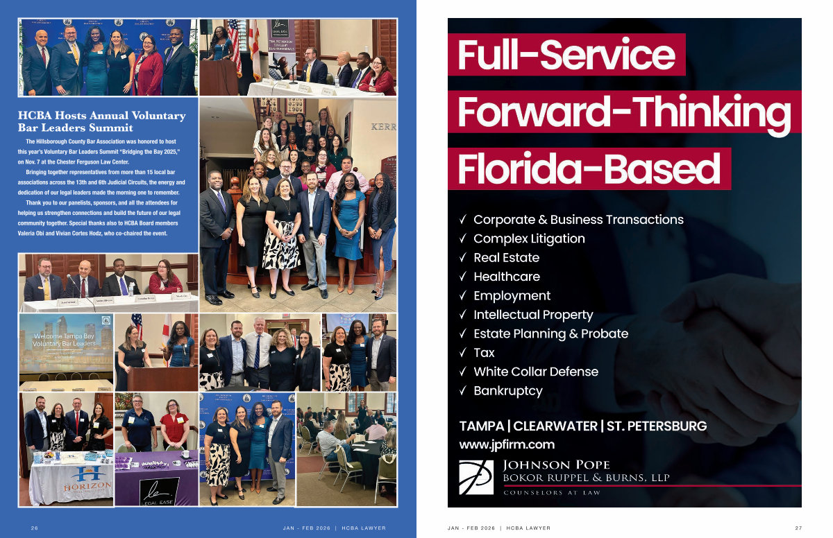 the hillsborough county Bar association was honored to host this year’ s voluntary Bar leaders Summit“ Bridging the Bay 2025,” on nov. 7 at the chester ferguson law center.