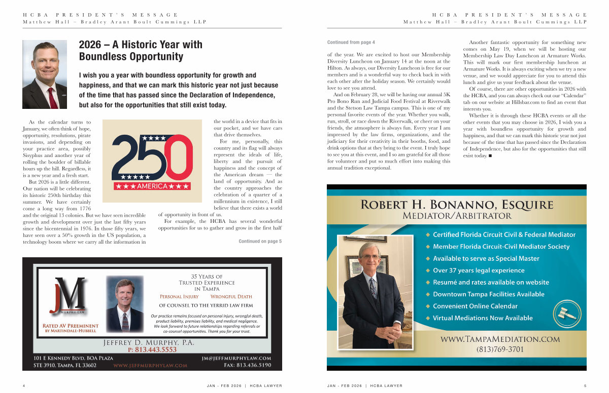 Of course, there are other opportunities in 2026 with the HCBA, and you can always check out our“ Calendar” tab on our website at Hillsbar. com to find an event that interests you.