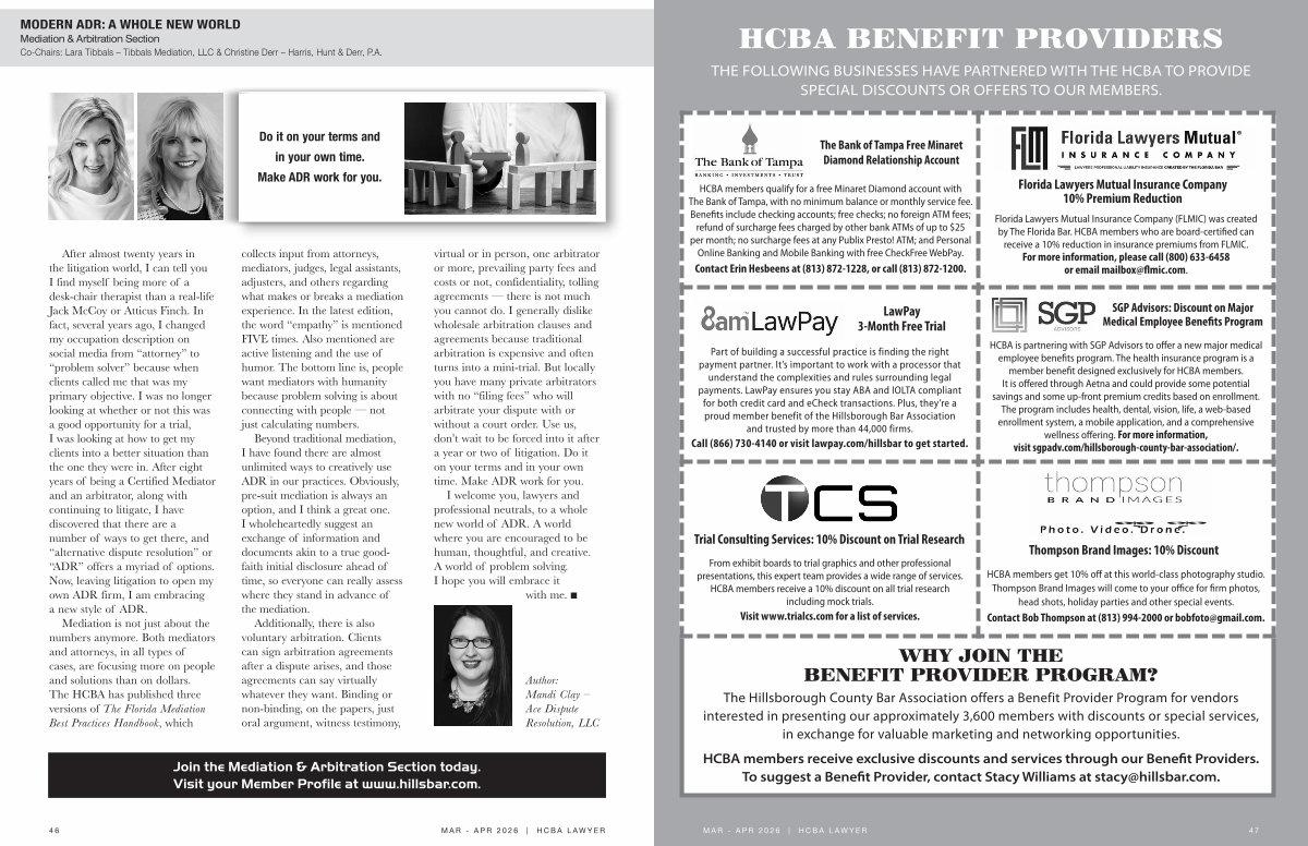 Join the Mediation & Arbitration Section today. Visit your Member Profile at www. hillsbar. com.
