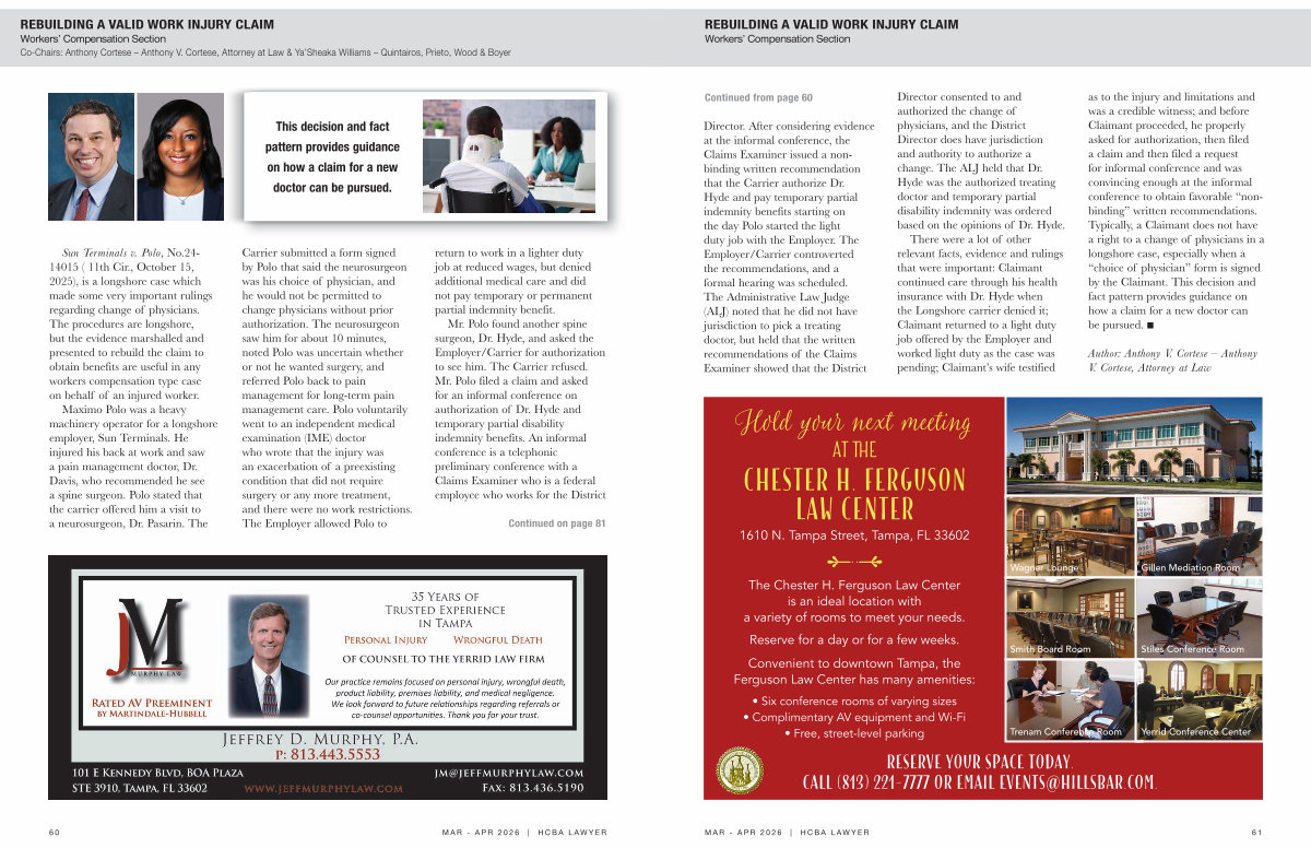 Workers’ Compensation Section Co-Chairs: AnthonyCortese – AnthonyV. Cortese, AttorneyatLaw & Ya’ SheakaWilliams – Quintairos, Prieto, Wood & Boyer