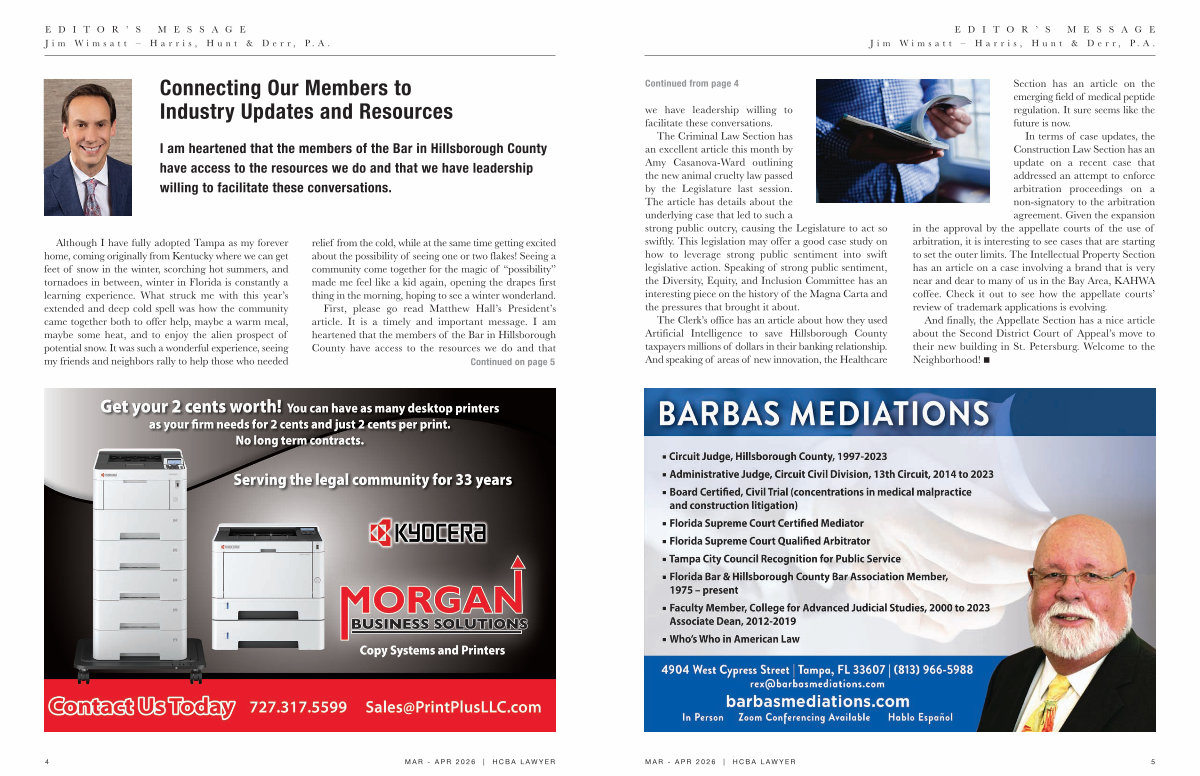 E D I T O R’ S M E S S A G E J i m W i m s a t t – H a r r i s, H u n t & D e r r, P. A.