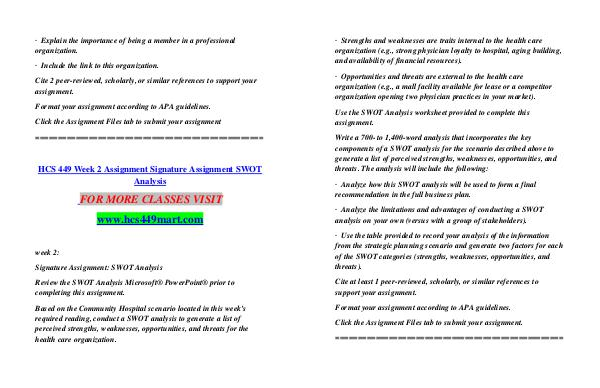 HCS 449 Week 2 Assignment Signature Assignment SWOT