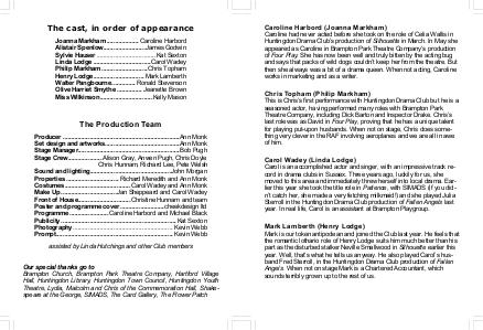 Stage Crew .................... Alison Gray, Anwen Pugh, Chris Doyle