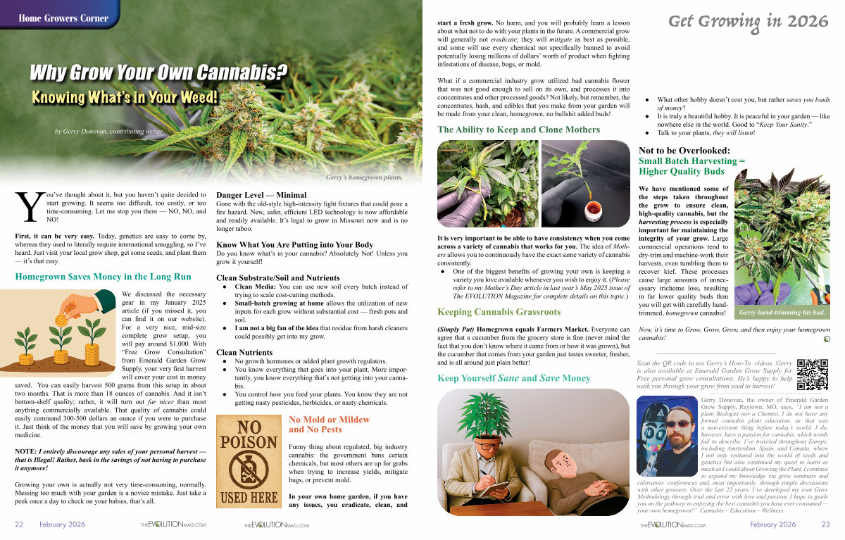 We discussed the necessary gear in my January 2025 article( if you missed it, you can find it on our website). For a very nice, mid-size complete grow setup, you will pay around $ 1,000. With“ Free Grow Consultation” from Emerald Garden Grow Supply, your very first harvest will cover your cost in money saved. You can easily harvest 500 grams from this setup in about two months. That is more than 18 ounces of cannabis. And it isn’ t bottom-shelf quality; rather, it will turn out far nicer than most anything commercially available. That quality of cannabis could easily command 300-500 dollars an ounce if you were to purchase it. Just think of the money that you will save by growing your own medicine.
